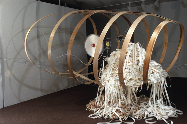 A rubber stamp on a motorized wheel prints, in my own handwriting, for 30 minutes, at 7am and 11pm: